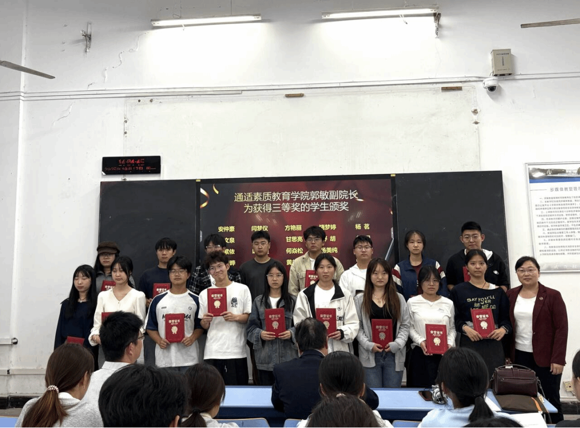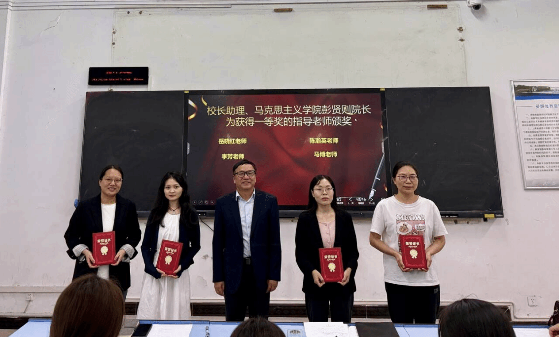 彭贤则校长助理、曾晓辉副院长、郭敏副院长分别为获得一等奖、二等奖和三等奖的学生和指导教师颁发荣誉证书和奖品,并合影留念。现场气氛热烈,掌声不断。