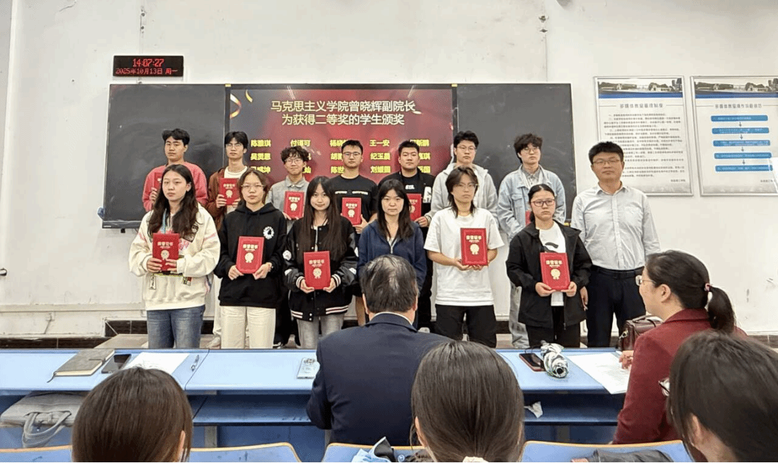 会上,马博老师宣读获奖学生和指导教师名单。据悉,大赛自2025年6月启动以来,共收到参赛作品110件,涵盖“大学生讲思政课”“我心中的思政课”微电影以及手绘地图三大类别。经校外专家匿名评审,评选出“大学生讲思政课”一等奖2名、二等奖3名、三等奖5名;“我心中的思政课”微电影一等奖2名、二等奖3名、三等奖5名;手绘地图一等奖2名、二等奖3名、三等奖2名。