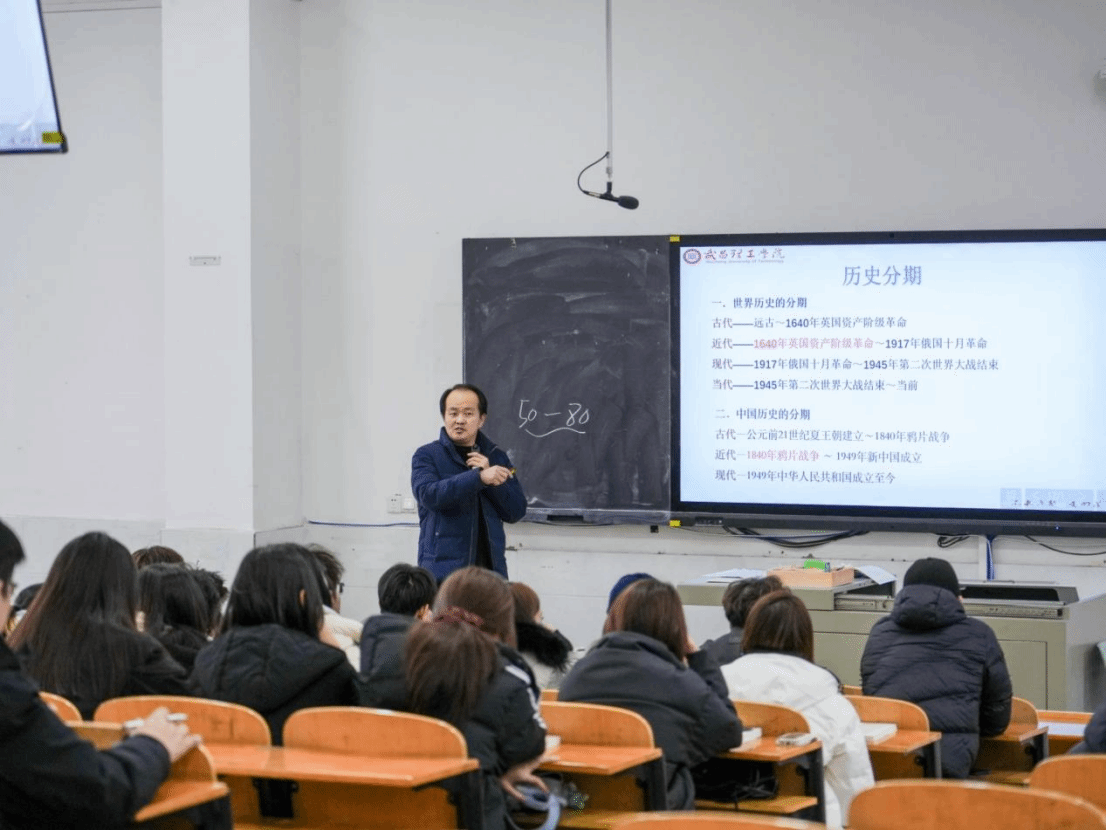 课堂上,侯亮荣老师围绕课程导言展开教学,从教师简介、课程学习要求、课堂规范、考核方式,到中国近现代史的学习意义、历史分期、科学历史观树立等核心内容进行系统讲解。课程设计条理清晰,既明确了“三率”“三带”“五会”的课堂学习要求与考勤、作业等具体考核标准,又立足思政课核心定位,深入阐释了学习中国近现代史对于明辨历史规律、增强民族认同、理解“四个选择”历史必然性的重要意义,将历史知识传授与思想政治引领有机融合,课堂节奏紧凑,教学环节完整,充分调动了学生的课堂注意力与参与度。